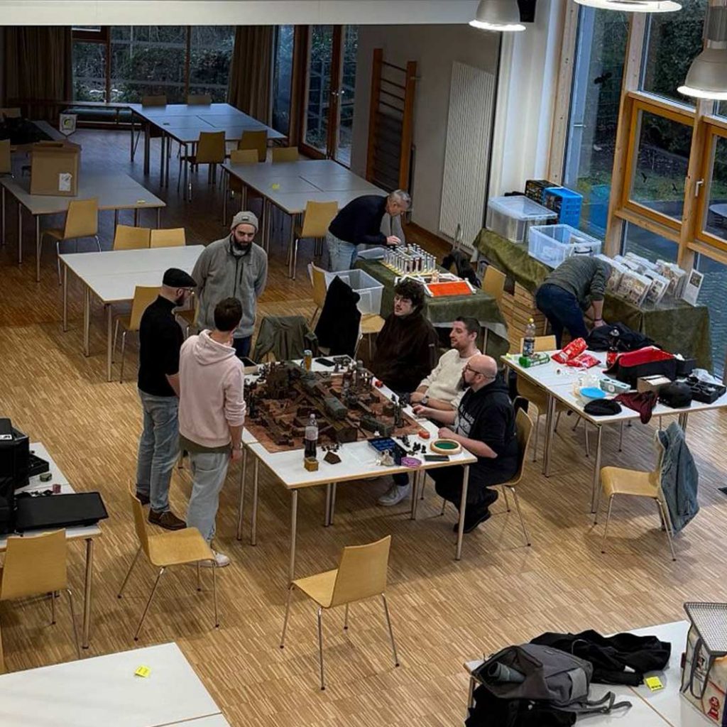 Material: Im Club werden bereits ab dem ersten Tag 8 Tische zur Verfügung stehen sowie diverses Gelände und Matten für die unterschiedlichsten Spiele. Wir werden die Club-Einnahmen dazu verwenden um stetig neues Material anzuschaffen und dabei auf eine faire Verteilung zwischen den Systemen achten.